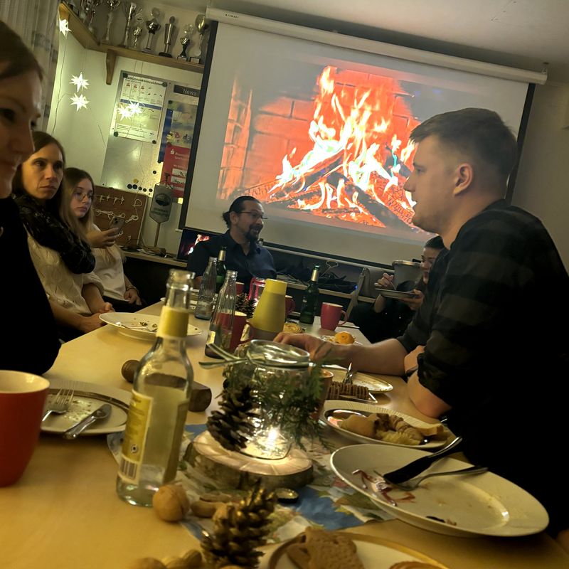 Einige Jugendliche hatten die Räumlichkeiten festlich geschmückt und auf den Tischen waren Nüsse und Süßigkeiten verteilt.